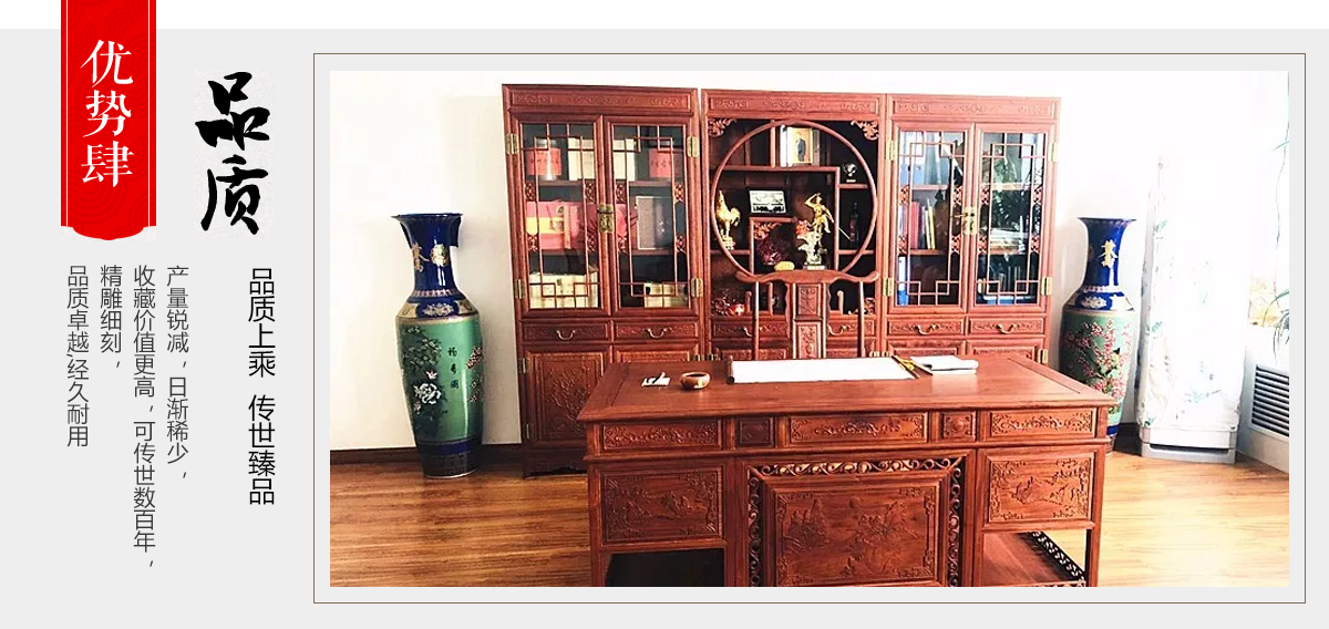 東陽市大聯(lián)福林堂紅木家具廠座落于素有“東方好萊塢”之稱的國家AAAAA級(jí)影視旅游基地橫店影視城, 是一家集開發(fā)、設(shè)計(jì)、生產(chǎn)、銷售、服務(wù)為一體的綜合型企業(yè)。本公司匯集一批具有豐富生產(chǎn)經(jīng)驗(yàn)的能工巧匠,具有豐富的紅木家具設(shè)計(jì)生產(chǎn)經(jīng)驗(yàn)。本公司產(chǎn)品主要選用紫檀、花梨、酸枝、雞翅等優(yōu)質(zhì)紅木,并采用純天然蜂蠟飾面。經(jīng)過蒸煮、脫脂、烘干、定型等多道工序嚴(yán)格處理,福林堂紅木始終嚴(yán)格秉承“質(zhì)量第一”、“信譽(yù)至上”的經(jīng)營理念,在繼承傳統(tǒng)工藝的基礎(chǔ)上,不斷創(chuàng)新,大力引進(jìn)先進(jìn)家具設(shè)備、烘干設(shè)備,實(shí)現(xiàn)了現(xiàn)代生產(chǎn)工藝與傳統(tǒng)表現(xiàn)手法的有機(jī)相融。